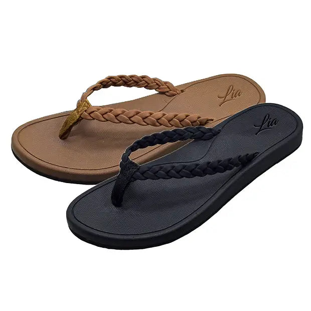 This collection of Women's flip-flops feature a woven strap design, these flip-flops are available in tan and black. The braided texture adds a rustic, laid-back feel.